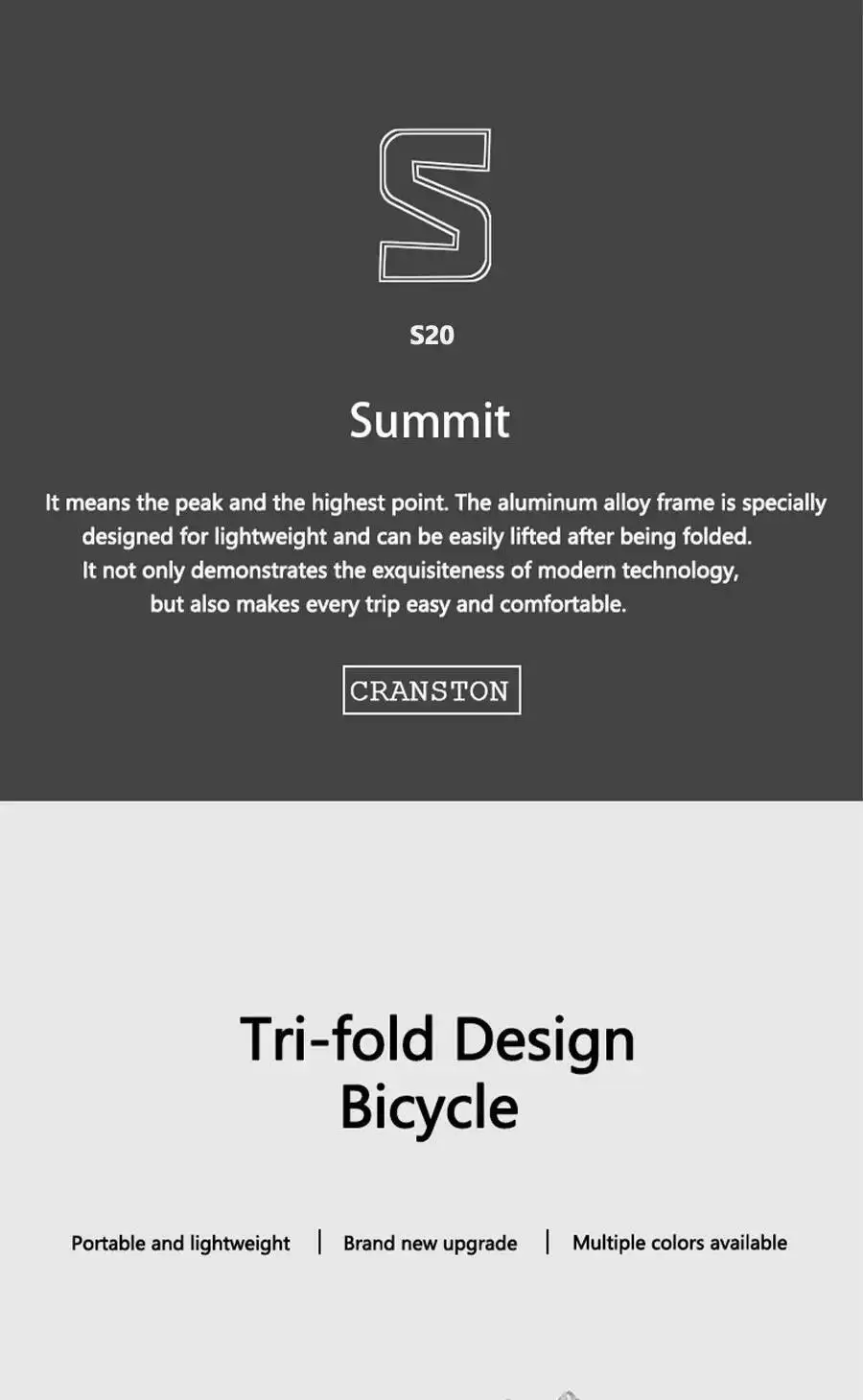 Home / ✔️ Faltfahrrad / CRANSTON S20 Rahmenpistole aus Aluminiumlegierung, Grau, Y/S-Lenker, 9-Gang-20-Zoll-Retro-Pendler, leichtes dreifach faltbares Fahrrad
