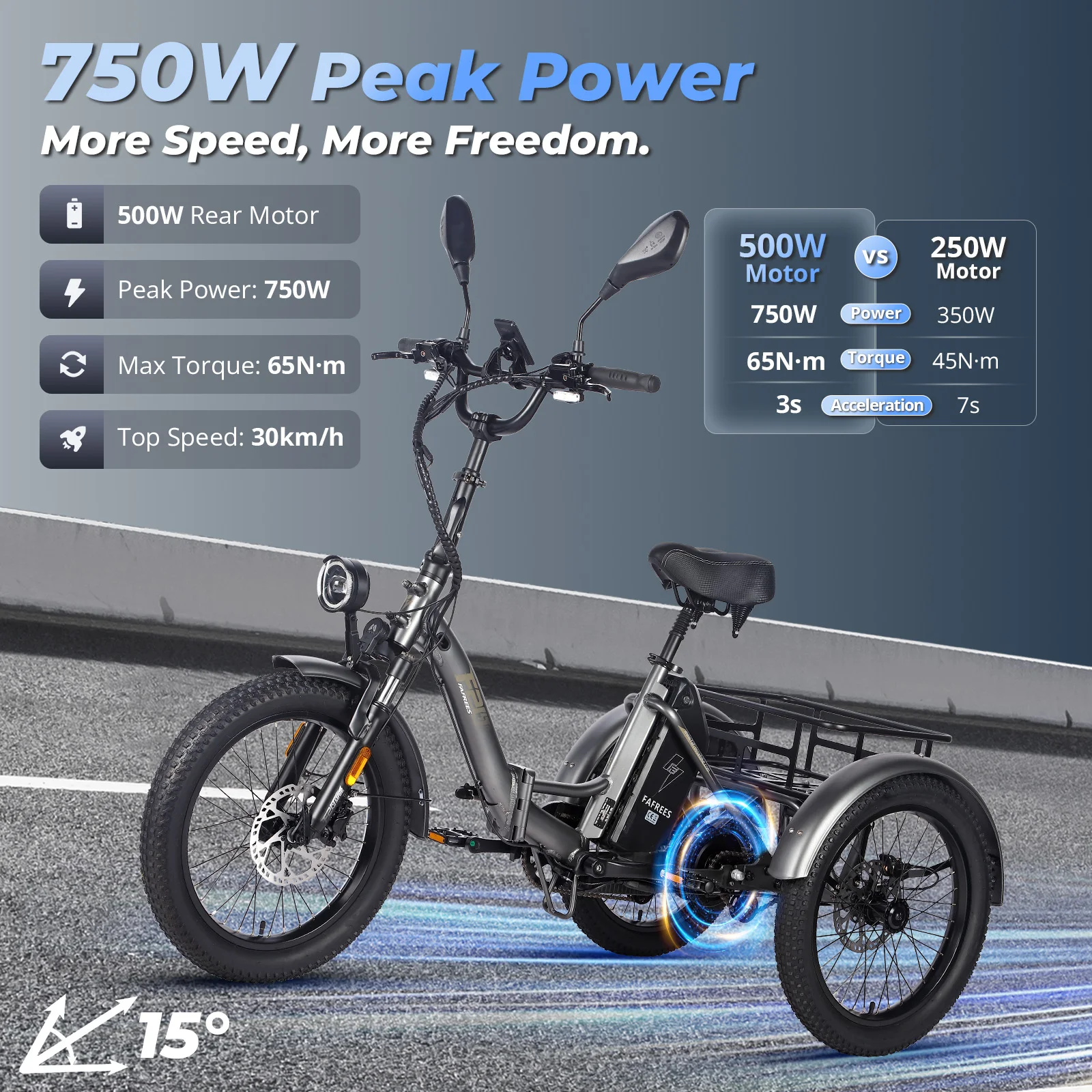 Fafrees F20 Mate Elektro-Dreirad, 500 W Motor, zusammenklappbar, Cargo-E-Bike, 48 V, 21 Ah, abnehmbarer Akku, 20 x 3,0 Zoll, fette Reifen, 110 km max