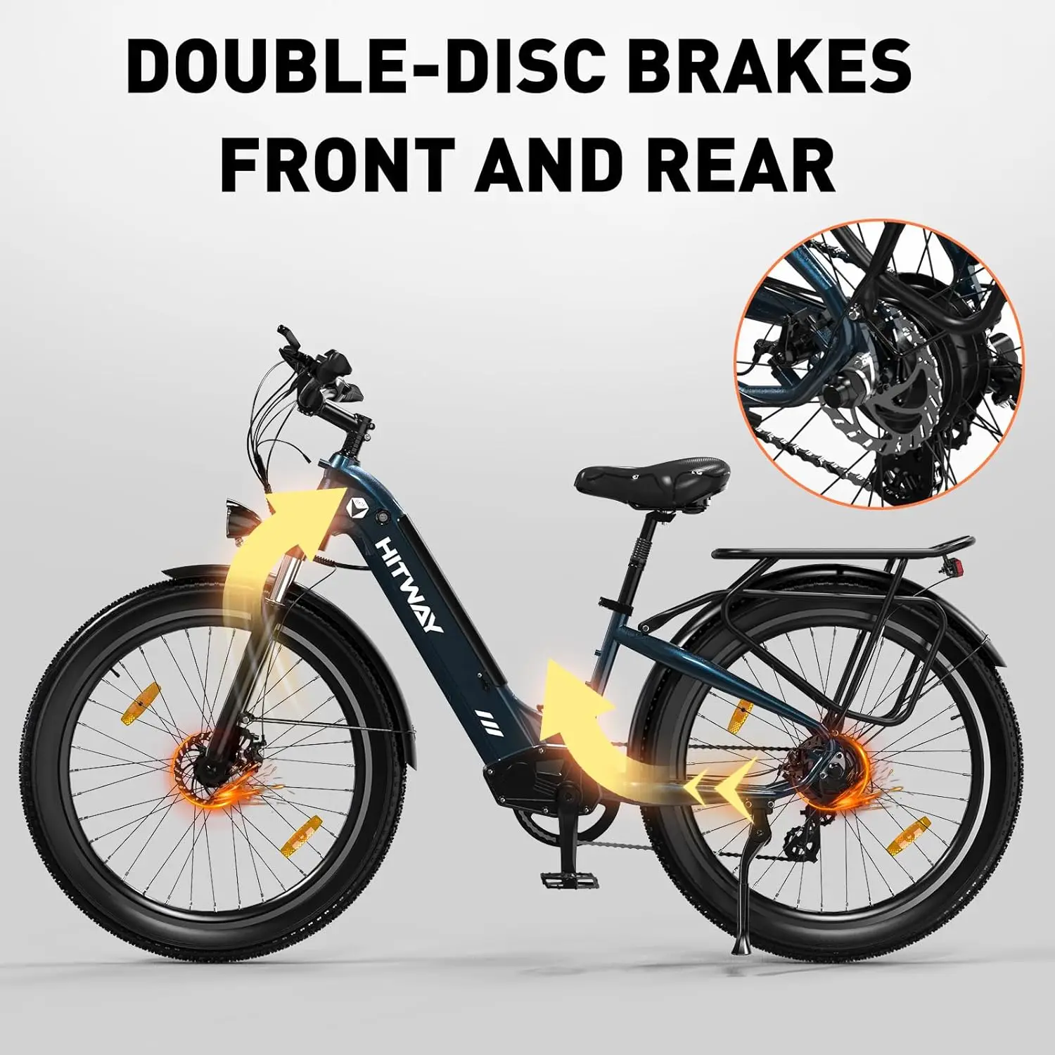 HITWAY 26X3.0 City Electric Bike Pedelec, 250 W City Cruiser E Bike, 48 V 18 Ah Austauschbarer Akku, maximale Reichweite 55–80 km, 7 Geschwindigkeiten, Commouter Electric Bike für ErwachseneProduktbeschreibungTreten Sie der Umdrehung von Elektrofahrzeugen bei und erleben Sie selbst den Nervenkitzel des HITWAY BK16 Elektrofahrrads.Es ist Zeit, eine umweltfreundlichere und aufregendere Art zu wählen.Holen Sie sich noch heute Ihre Kopie und lassen Sie die Abenteuer beginnen!Materialgehäuse: Aluminiumlegierung.Farbe: Schwarz/Weiß/Blau.Nicht aufgeführte Größe: 1800 mm x 680 mm x 1100 mm.Nabenform: Speichenrad.Radgröße: 26 Zoll.Verpackungsgröße: 1540 mm x 270 mm x 830 mmGroß/Netz: 80 Pfund/65 PfundMaximale Geschwindigkeit: 25 km/h (15 Meilen pro Stunde).Kilometerstand: 55–80 km (abhängig von Last, Temperatur, Straßenbedingungen, Fahrmodus usw.)Zum Beispiel: bei 75 kg und 25 kg°C, der maximale Bereich im Elektrik kann den Modus 55 km erreichen, und der Mopedbereich hängt von der Belastung und dem Fahrstil ab).Maximaler Kletterwinkel: 25 Grad.Batterietyp: 21700 Samsung Li-Ionen-Akku.Batteriekapazität: 18 Ah.Nennspannung der Batterie: 48 V.Motornennleistung: 250 WMotordrehzahl im Leerlauf: 350 U/min.Ladezeit: 7-8 StundenReifen: 26 x 3,0 ZollWas ist in der Box?1 x HITWAY E-Bike1 x HITWAY Fahrradpumpe1 x HITWAY FahrradschlossLadegeräte und andere TeileÜber diesen Artikel21700 Samsung-Lithiumbatterie: Entfesseln Sie die Leistung unseres HITWAY BK16 E-Bikes mit ihrem 48V 18Ah 21700 Samsung-Lithiumbatterie mit großer Kapazität.Vom Kurztrip bis hin zu längeren Fahrten bietet das BK16 E-Bike eine beeindruckende Reichweite von 55–80 km.Erleben Sie längere Fahrzeiten und sparen Sie Leistung beim täglichen Pendeln oder in der Freizeitfalten.All-Terrain-Typen: Dank der 26×3.0-Zoll-All-Terrain-Typen unseres E-Bikes können Sie jeden Straßenbedingungen selbstbewusst beherrschen.Egal, ob Sie auf Papierwegen, Kieswegen oder sogar sogar auf Wegen fahren, Sie können unser Elektrofahrrad relativ anbringen, um überragende Traktion und Stabilität zu bieten.Vielseitige Fahrmodi: Genießen Sie den Komfort sowohl des Pedalassistenzmodus als auch des traditionellen Pedalmodus mit unserem HITWAY BK16-Elektrofahrrad.Wechseln Sie ganz einfach zwischen diesen Modi, die Ihren Fahrvorlieben hängen.Robuste und leichte Konstruktion aus Aluminiumlegierung: Elektrofahrzeuge sind dank ihres hochwertigen Aluminiumlegierungsrahmens auf Langlebigkeit ausgelegt.Es ist nicht nur langlebig, sondern auch leicht.Gleichzeitig zeigt das LCD verschiedene Daten wie Kilometerstand, Geschwindigkeit, Pegel, Batterie usw. an.und dies ermöglicht ein erstklassiges Fahrerlebnis.Stoßdämpfung, Slipfestigkeit, Sicherheit: Das E-Bike verfügt über ein Doppelscheiben-Stopprotor-Design. Bietet weiche Polsterung und Stoßdämpfung beim Fahren auch auf der Straße, sodass Sie Fahrspaß genießen können. Es ist außerdem mit verstellbaren Sitzen, Slips- und verschleißfesten Typen sowie helle, adaptive LED-Scheinwerfern für Nachtfahrten ausgestattet.