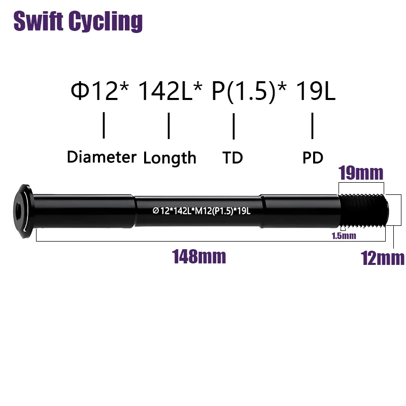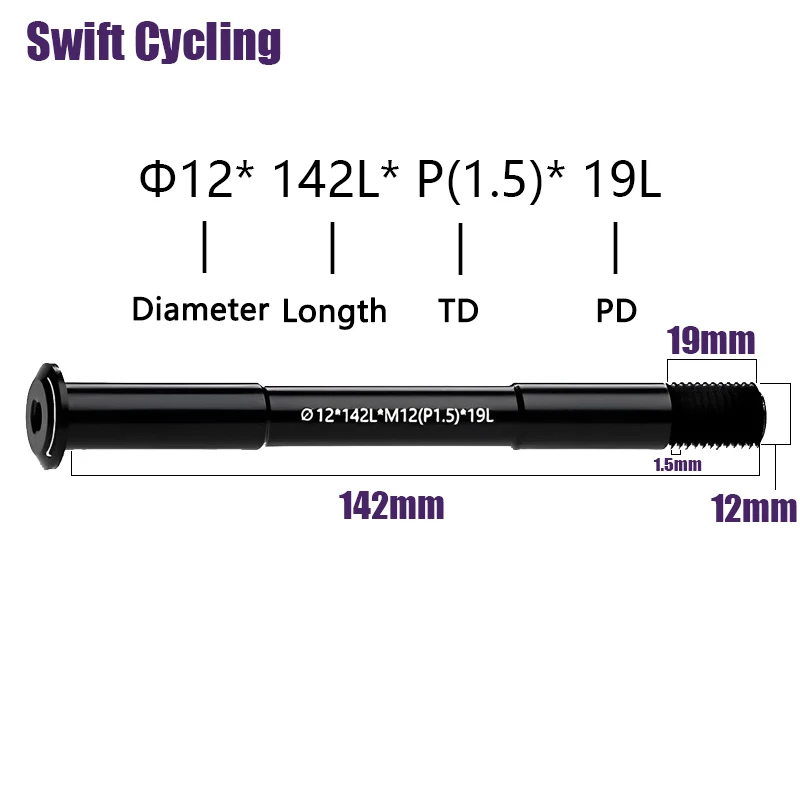 Swift MTB Rennrad Steckachse Vorderradgabel Schaftspieße M12x1.0 M12x1,5 12×142/148/157 12×100/110mm Fahrradachse aus Aluminiumlegierung